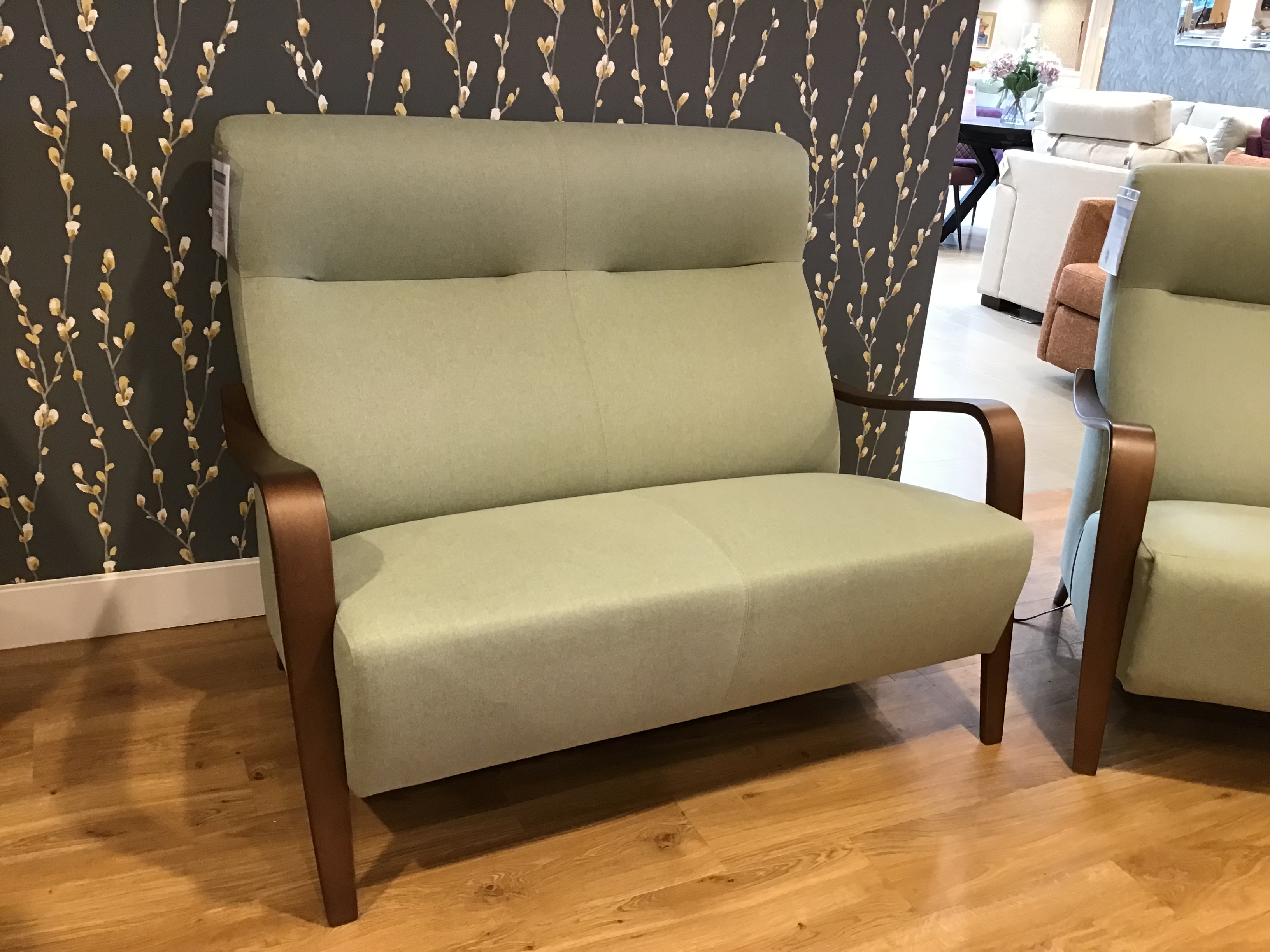 Made in Spain, this stylish and comfortable sofa in "Sonata Sage" would look great in any living space!