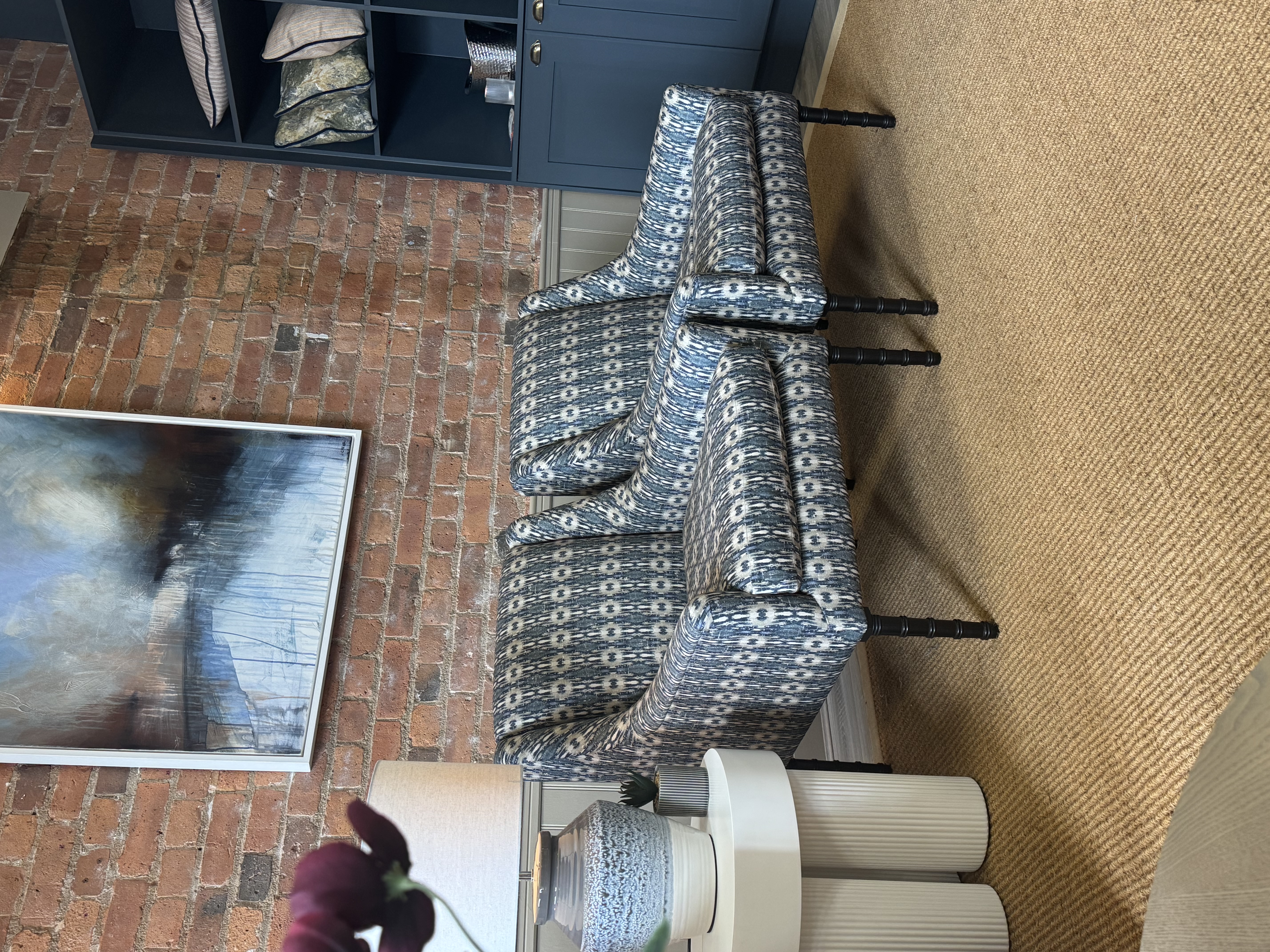 Hand-turned bamboo inspired legs.